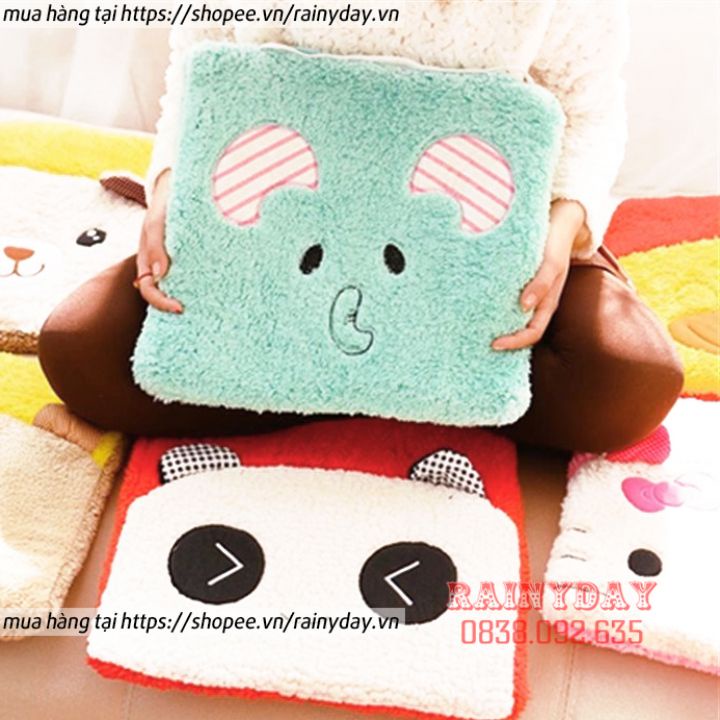 - Lớp bọc đệm được may bằng chất liệu vải bông hình thú bền đẹp, không bị đổ lông hay phai màu.