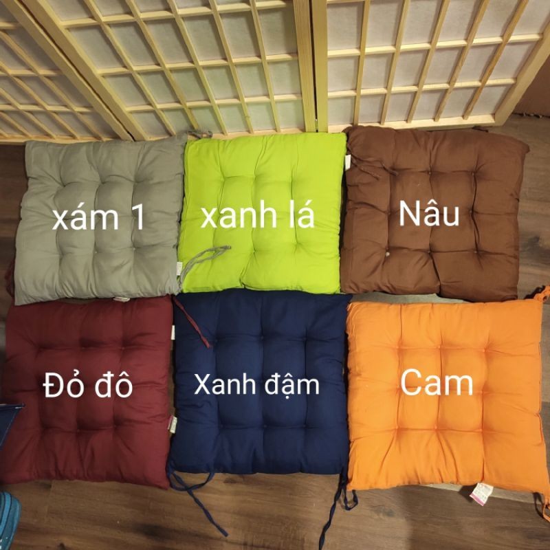 Nệm ngồi bệt kiểu Nhật 40x40cmChất liệu vải nệm bông có thêm dây buột (nếu muốn buột vào ghế)