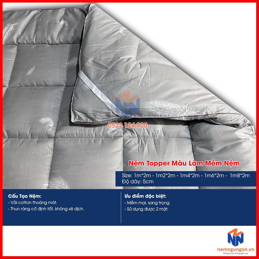 Giới thiệu Nệm topper, tấm topper nệm, làm mềm nệm cao cấp - Dày 5cm [Full size] - Giao màu ngẫu nhiên