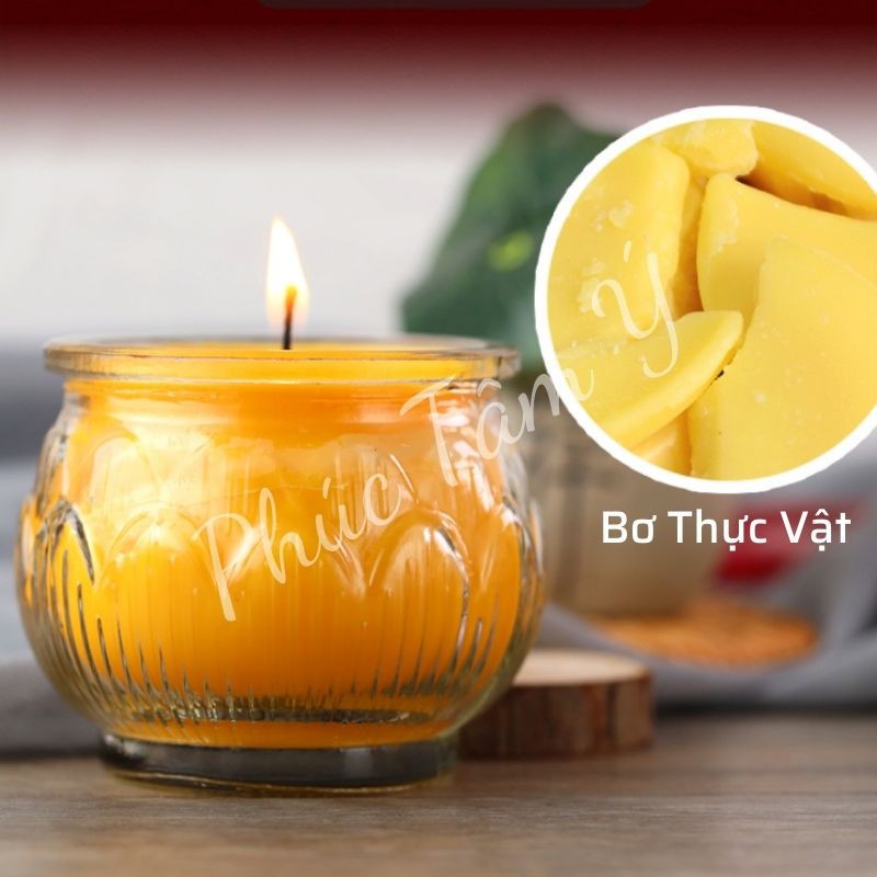 NẾN BƠ hoa sen không mùi không khói 🙏 ĐỒ THỜ CÚNG 🙏 An toàn cho sức khỏe, hủ thủy tinh, cháy 24 tiếng (PHÚC TÂM Ý)⚜️ Thành phần: bơ thực vật