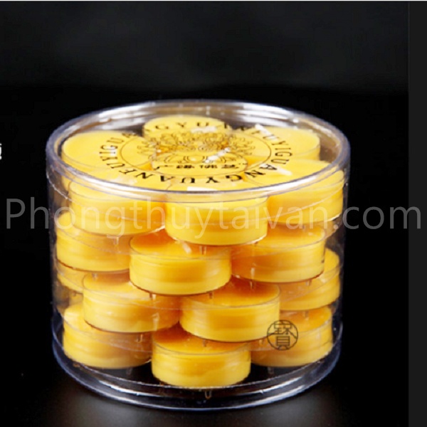Nến Bơ sáp màu VÀNG,ĐỎ 4h 28 Viên thơm không khói (dùng bàn thờ gia tiên, phật, thần, ....)