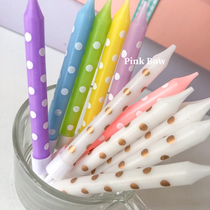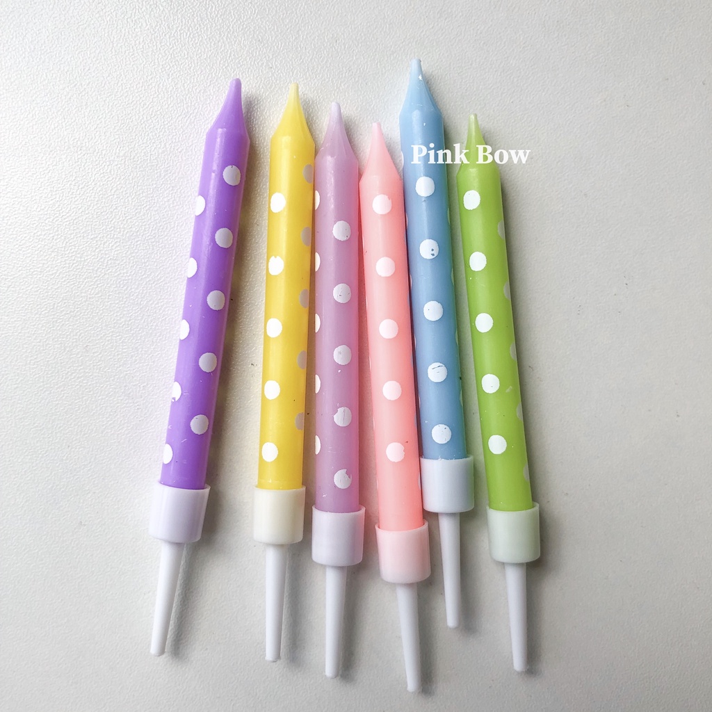Nến chấm bi trang trí bánh kem sinh nhật đủ màu Pastel set 6c