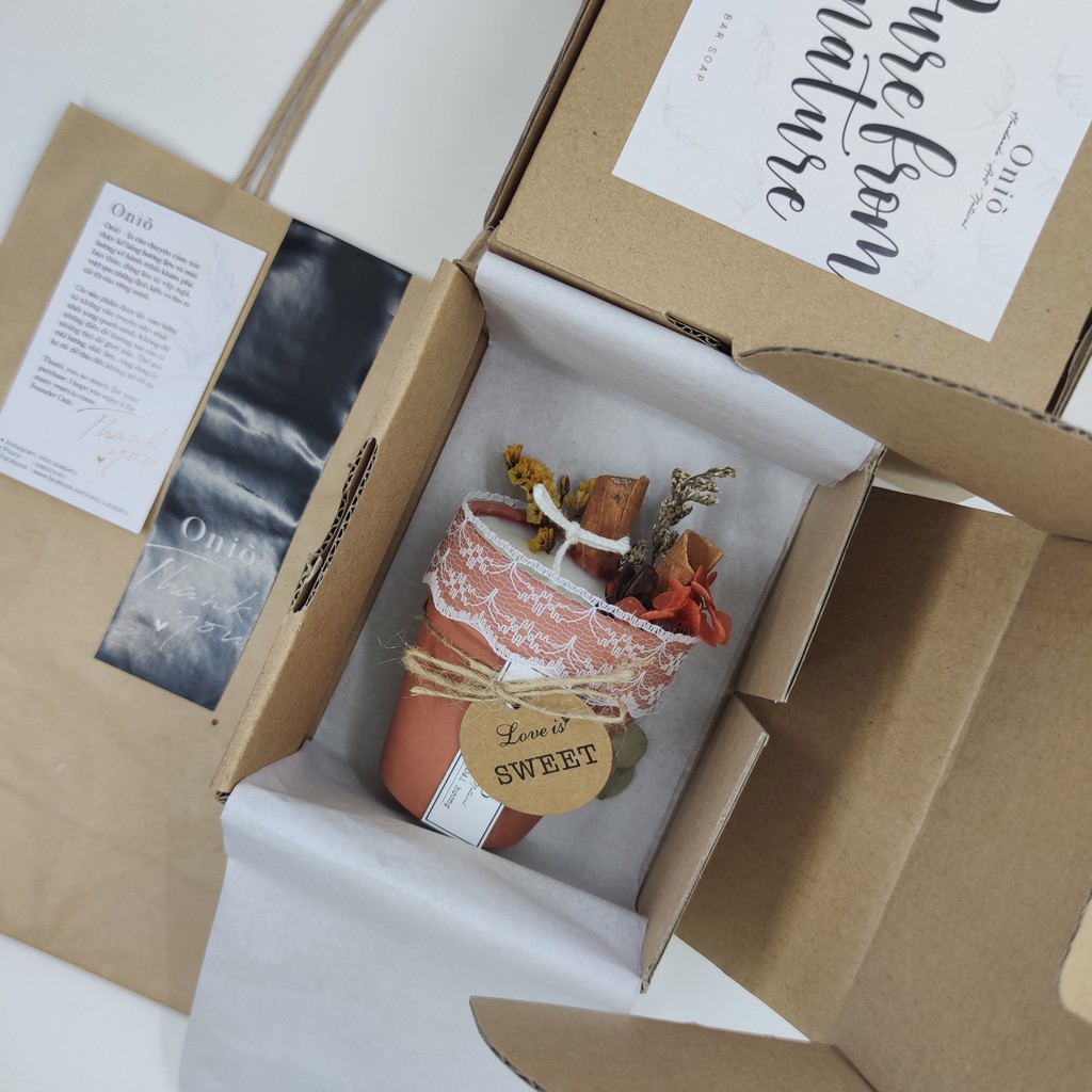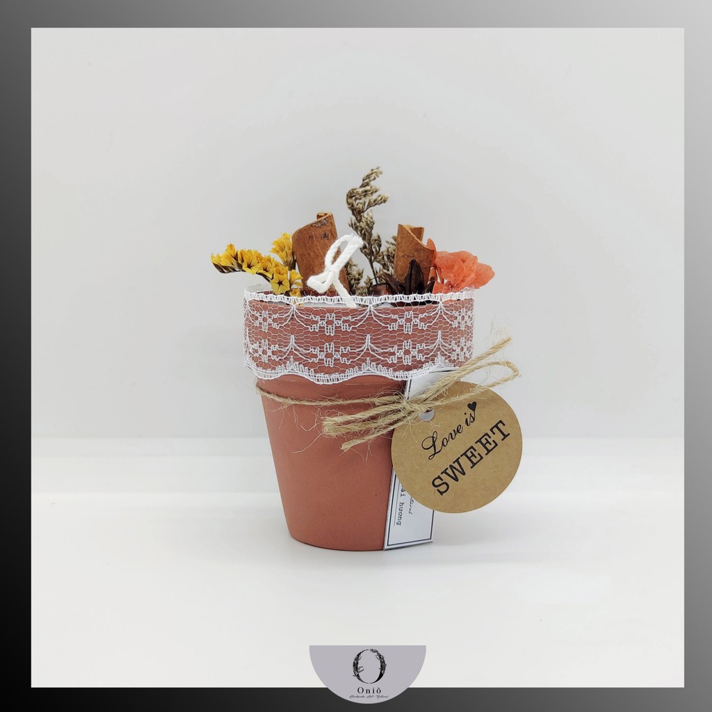 Nhà cửa & Đời sống > Trang trí nhà cửa > Nến & đồ đựng nến || Nến chậu cây trang trí hoa khô, Hương thơm tinh dầu handmade by Oniõ, 90g sáp đậu nành, đốt liên tục 25-30hCòn hàng