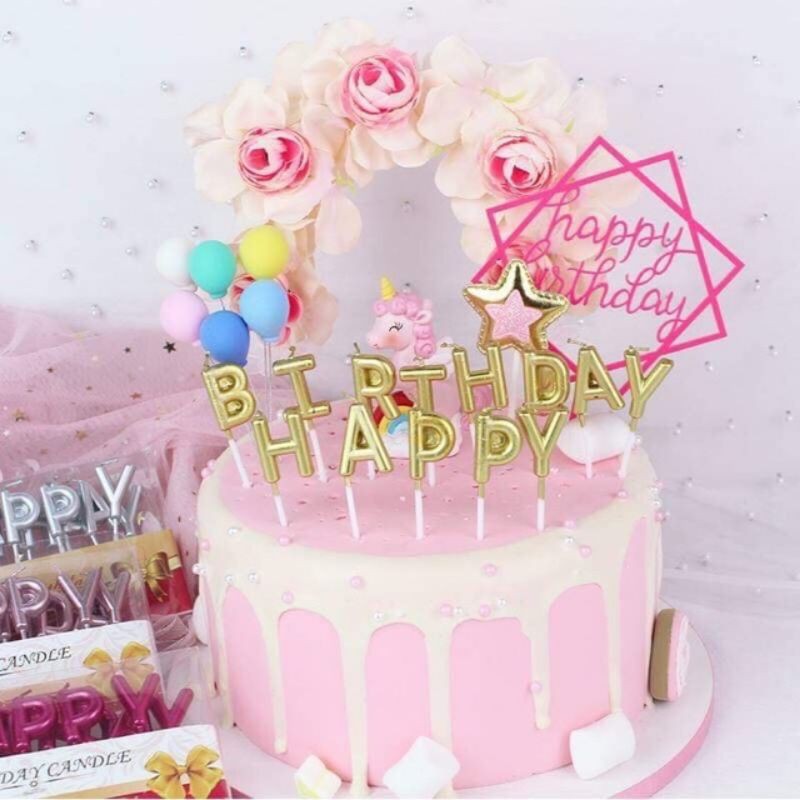 Giới thiệu Bộ nến chữ Happy Birthday Nhũ trang trí bánh sinh nhật