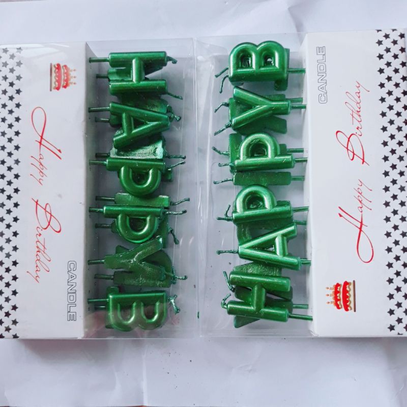 Nến chữ HPBD màu xanh lá trang trí bánh kem, Đèn cầy trang trí sinh nhật