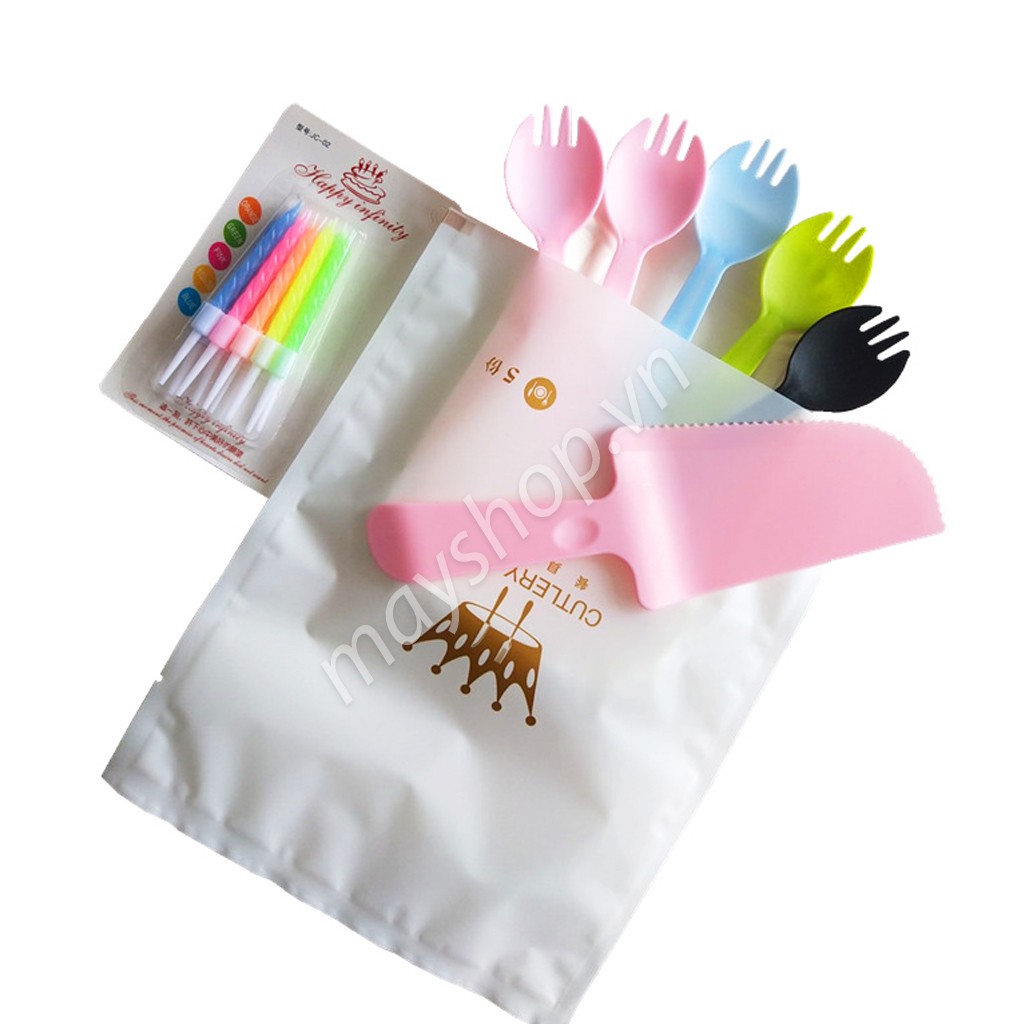 Bộ nến, đĩa, dĩa sinh nhật (bộ 10 chiếc)