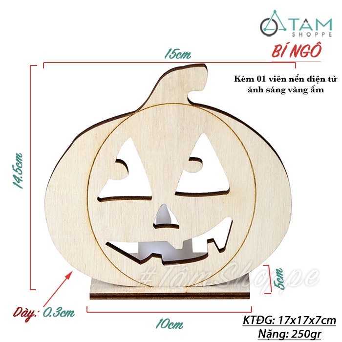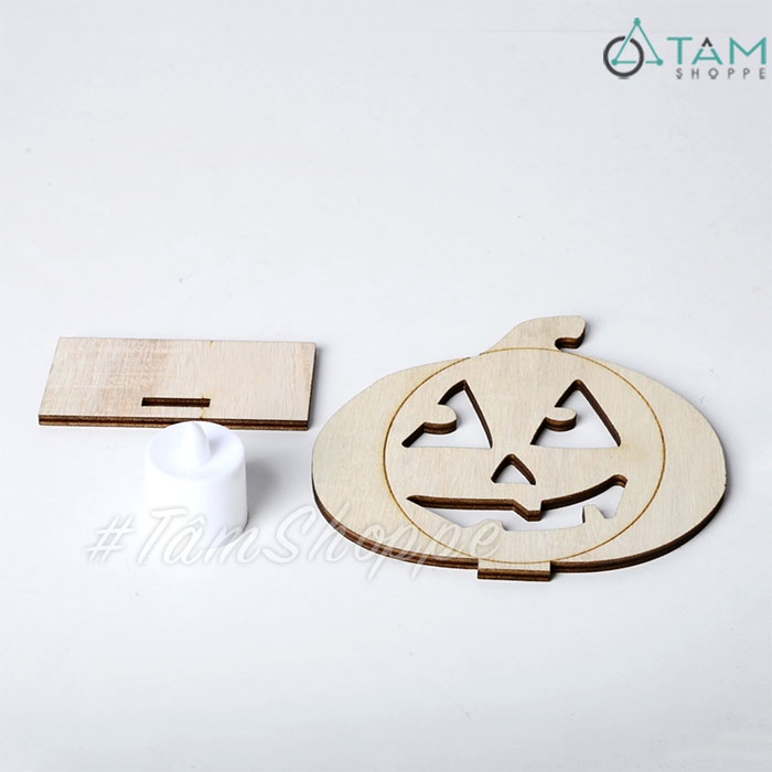 Giới thiệu [NẾN ĐIỆN-LẮP RÁP-KÈM PIN]Set chân nến đế gỗ trang trí Halloween ván ép đơn giản H-CHN-20