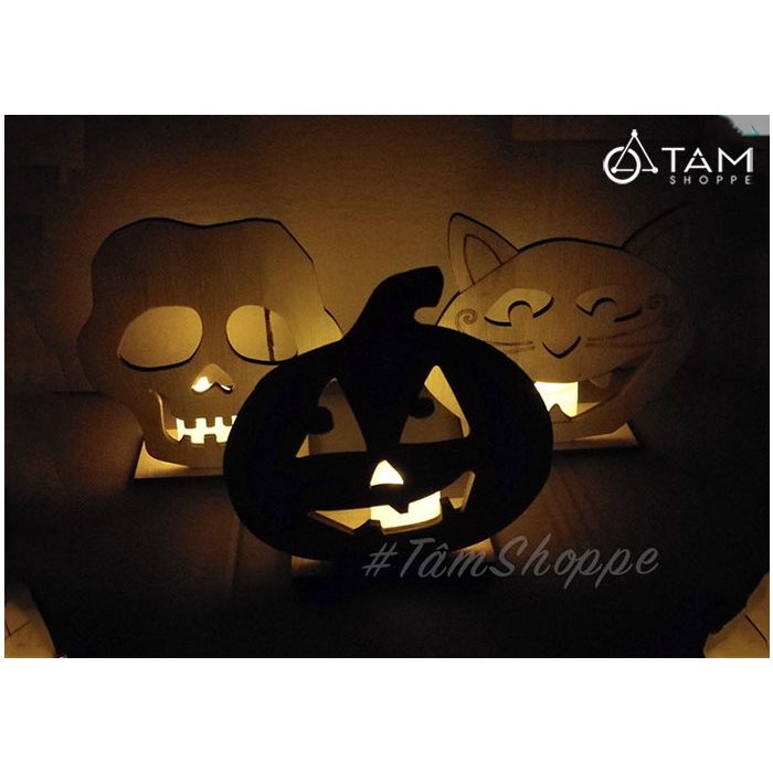 [NẾN ĐIỆN-LẮP RÁP-KÈM PIN]Set chân nến đế gỗ trang trí Halloween ván ép đơn giản H-CHN-20