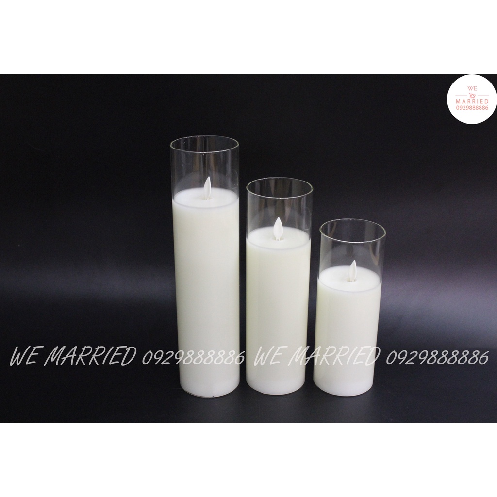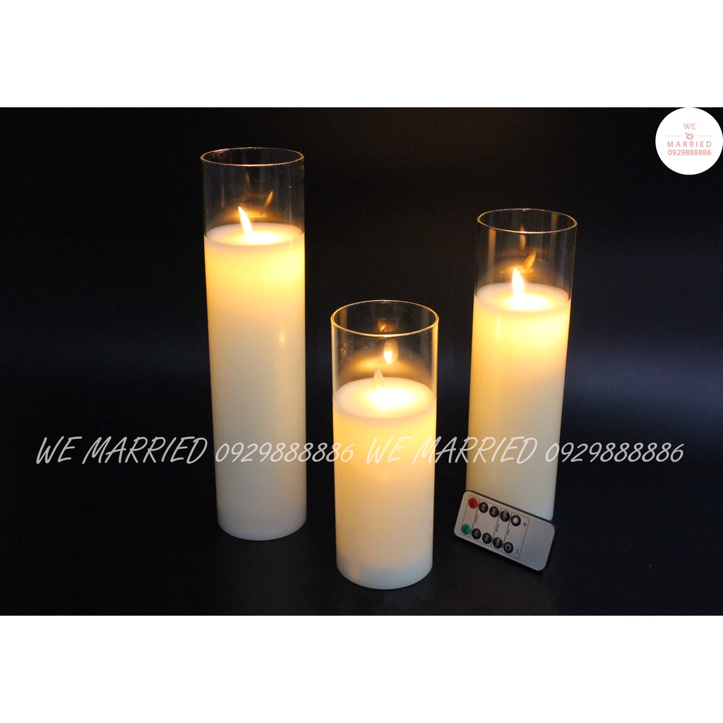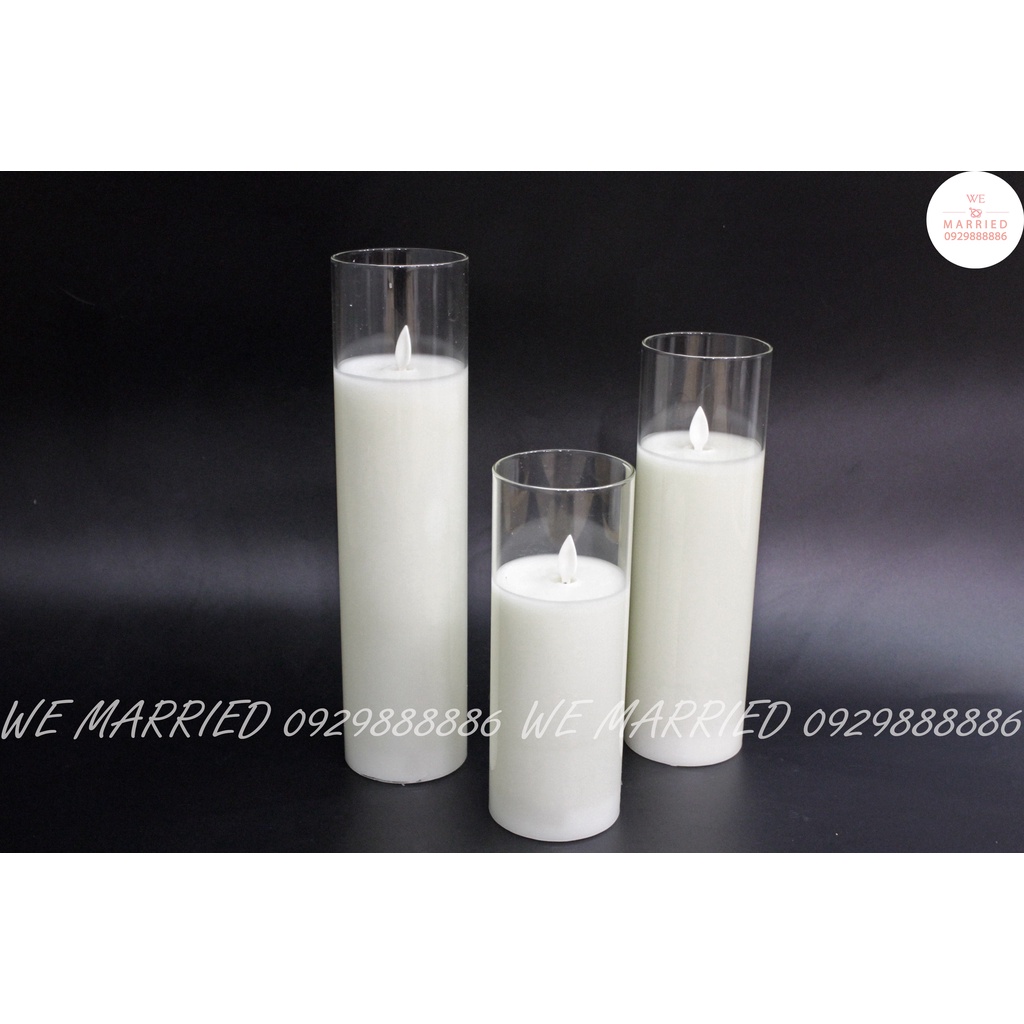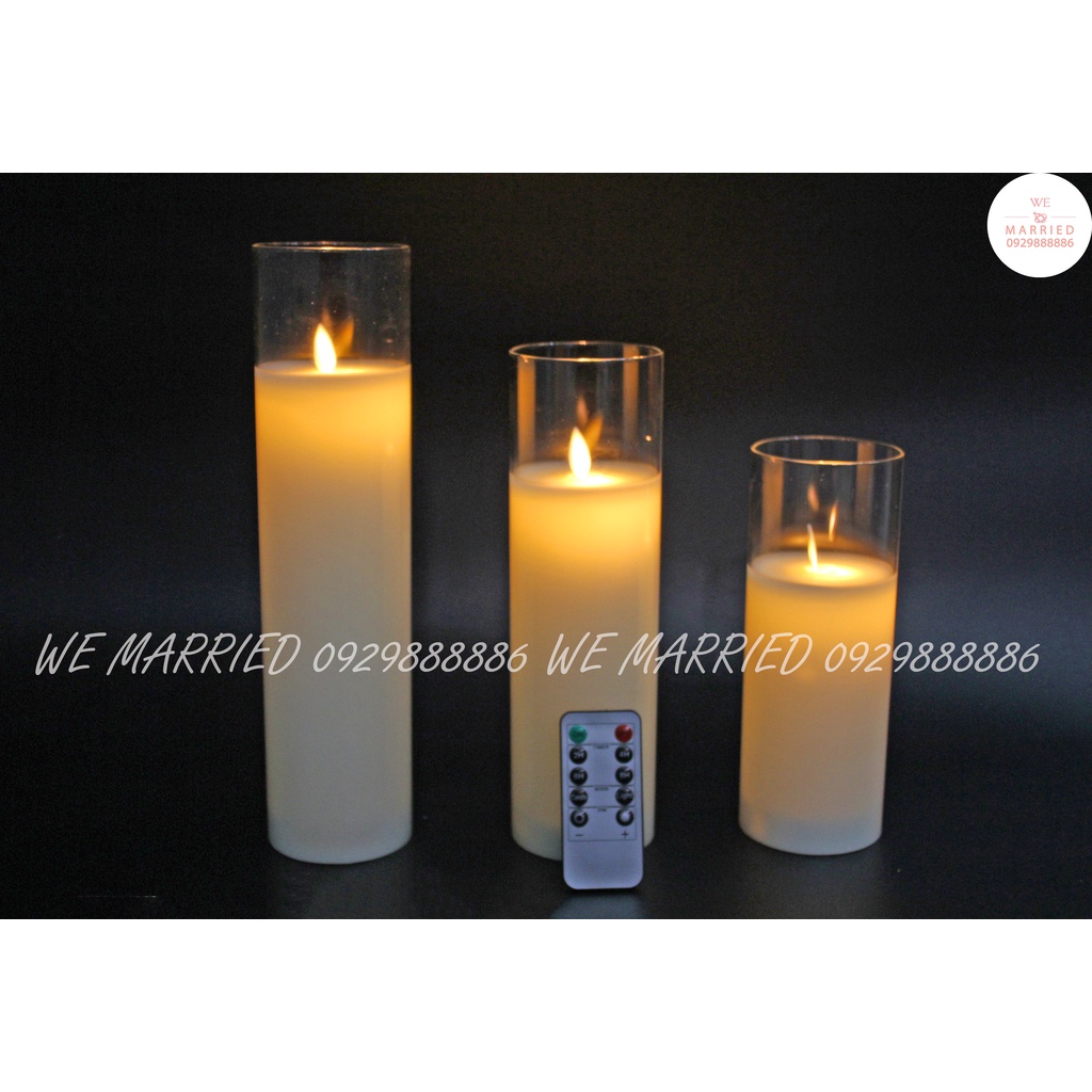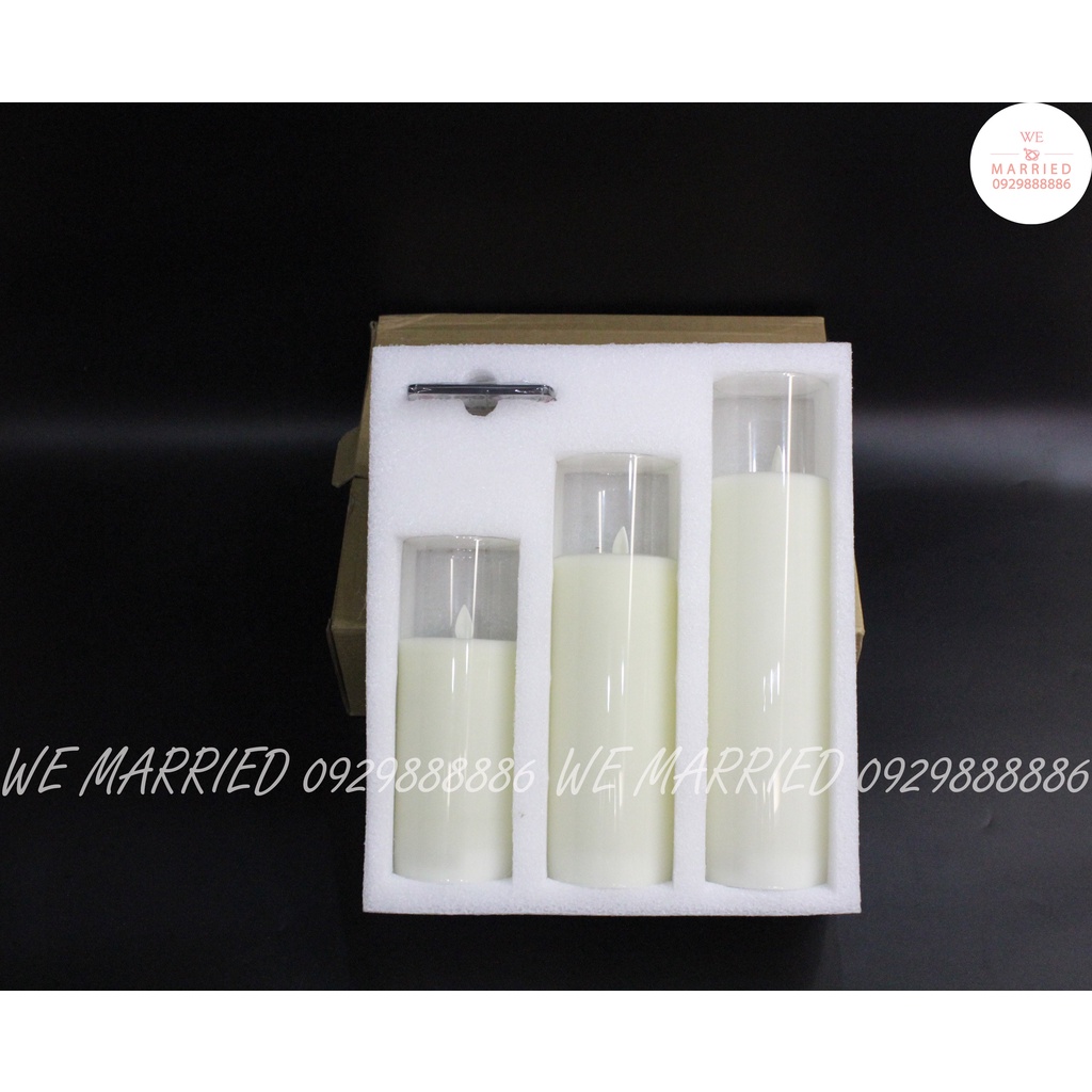 NẾN ĐIỆN TỬ BỘ 3 CỐC CAO (NẾN BẰNG SÁP, CỐC THUỶ TINH)