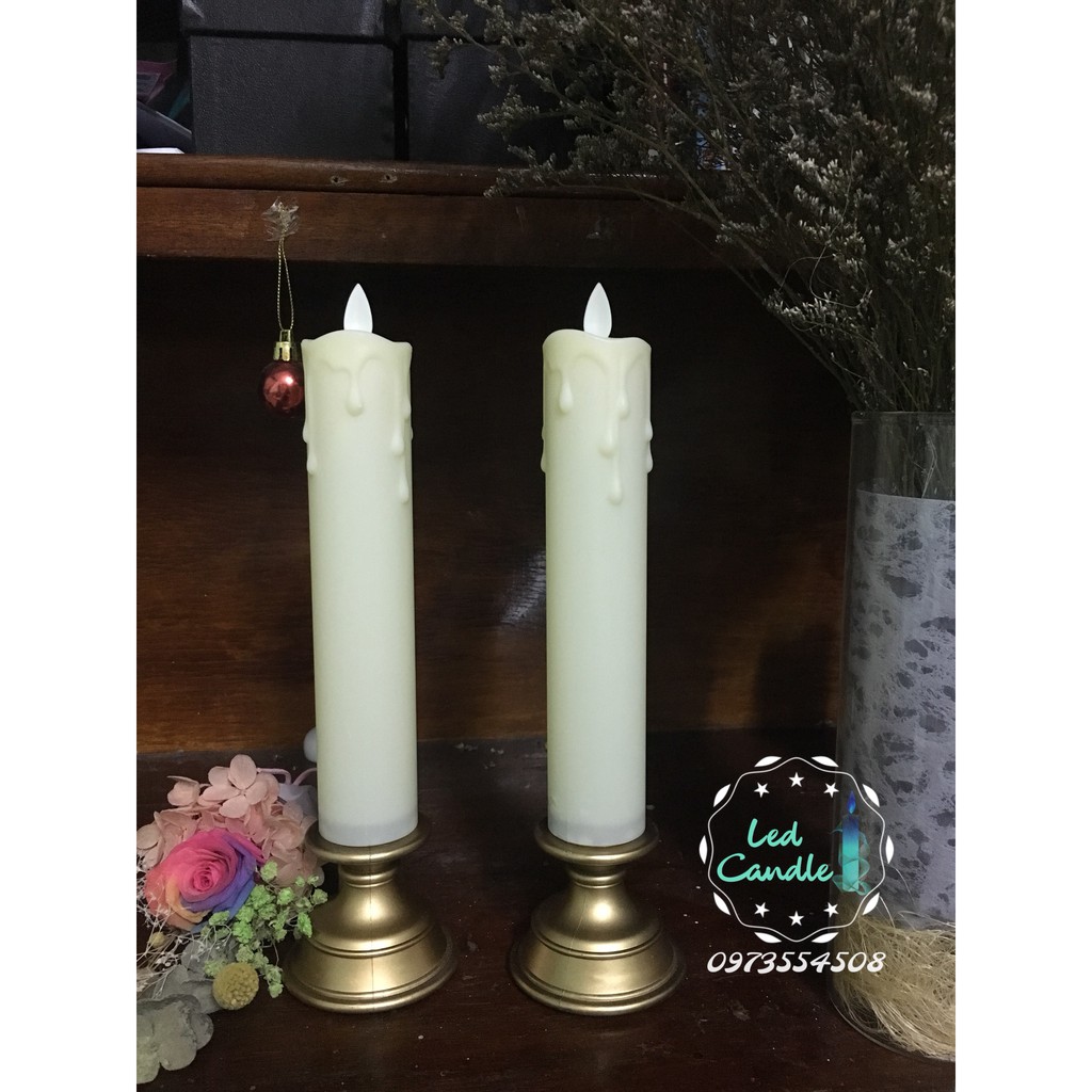 Nến Điện Tử chân đế vàng, kèm sẵn chân nến đường kính 4cm <Giá 1 cây>