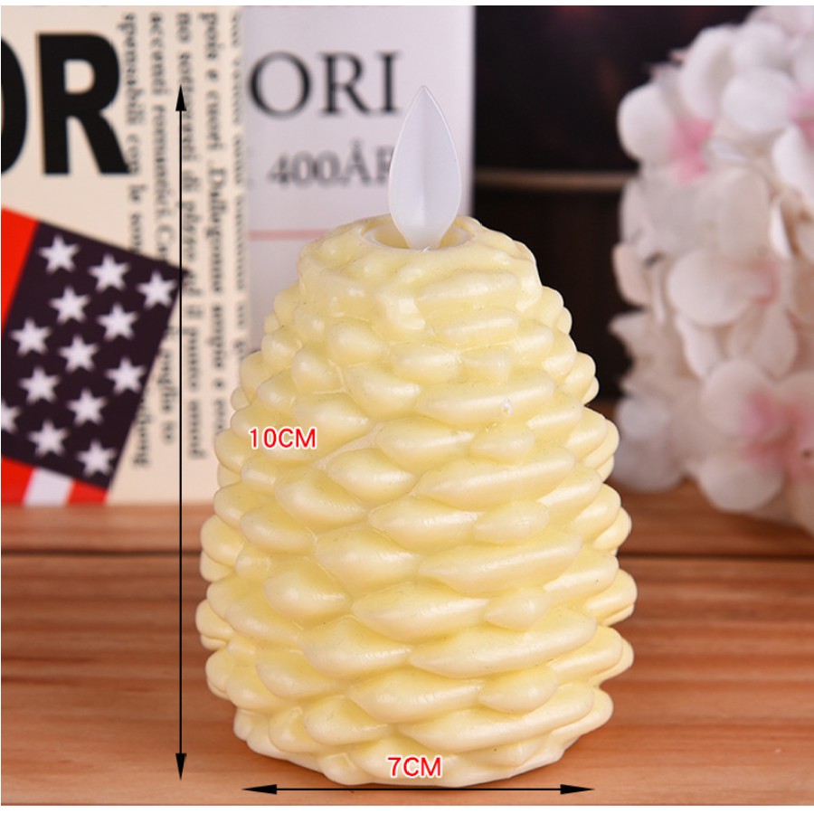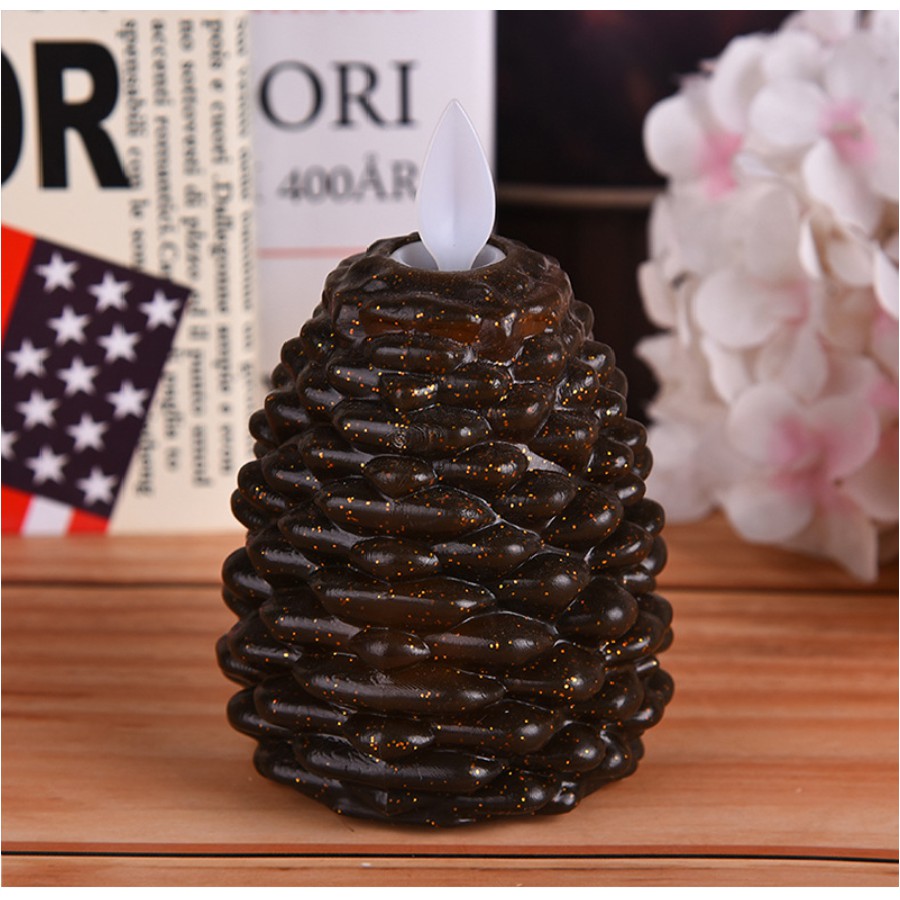 Nến điện tử-đèn cầy điện hình quả thôngChất liệu : nhựa độ bền cao, hình dáng như quả thông
