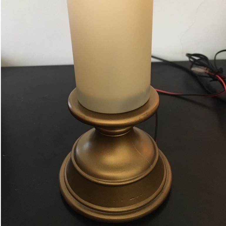 -Nến có chân đế vàng, đường kính chân đế 7cm, đường kính trụ nến 4cm
