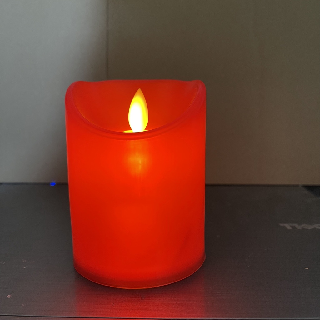 Nến điện tử - đèn cầy điện tử vỏ nhựa màu đỏ đường kính 7.5cmĐèn nến điện tử là dòng sản phẩm thông minh, ra đời nhằm thay thế các sản phẩm nến đốt sử dụng nguồn nguyên liệu parafin hóa thạch không thân thiện với môi trường và lại dễ dàng gây cháy nổ, hỏa hoạn. Với ngọn đèn mô phỏng ngọn nến thật đang cháy luôn lắc lư qua lại như ngọn lửa thật đang cháy.