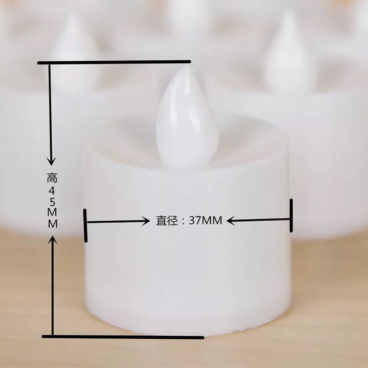 Nến điện tử tealight có đường kích 3.7cm và chiều cao 4.5cm sử dụng 2 viên pin cúc áo Ag10 hoặc tên gọi khác là LR1130