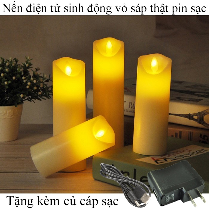 Nến điện tử sinh động sáp thật pin sạc đường kính 5cm tặng kèm củ và dây sạc