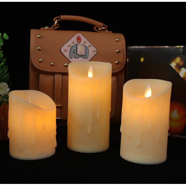 ** SẢN PHẨM KHÔNG KÈM THEO PIN CHO NẾN** Kích thước: đường kính 7.5cm, cao 10cm, 12.5cm và 15cm.
