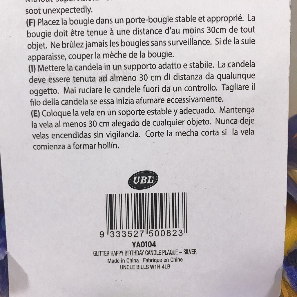 Nhà cửa & Đời sống > Trang trí nhà cửa > Nến & đồ đựng nến || Nến Happy Birthday lấp lánh bạc Uncle Bills YA0104Còn hàng