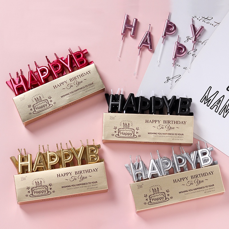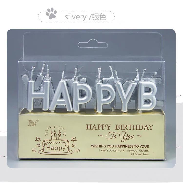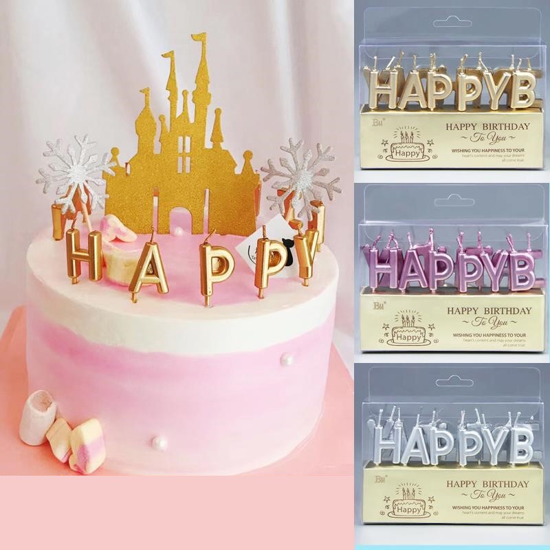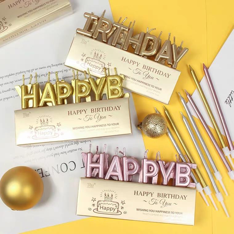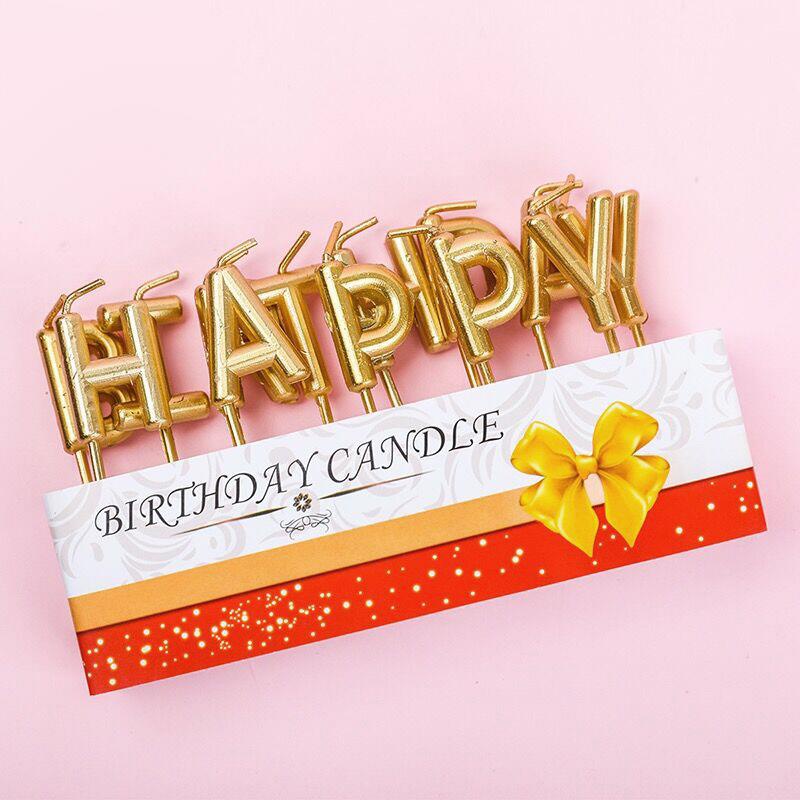 - Bộ nến chữ Happy Birthday sang trọng trang trí bánh kem thêm phần cuốn hút- Shop hiện sẵn 2 màu: vàng, bạc