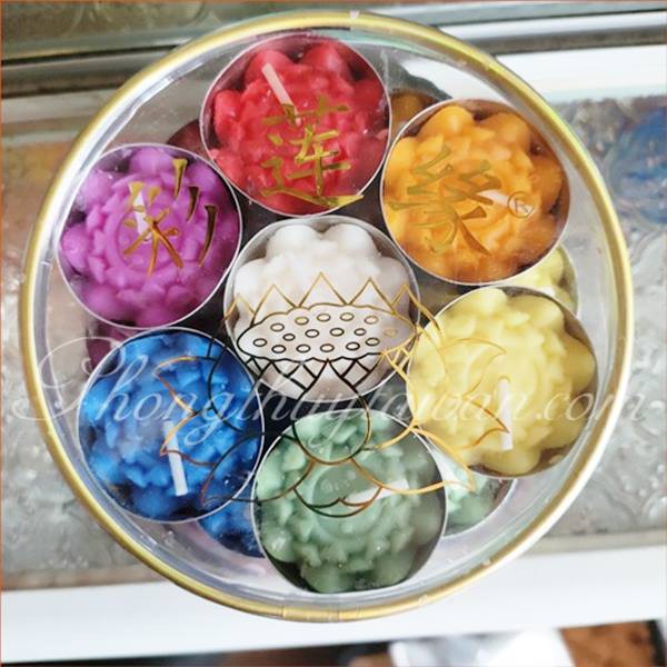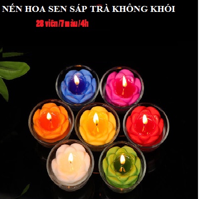 Nến hoa Sen Bơ sáp 7 MÀU 28 Nến thơm không khói 4h (dùng bàn thờ gia tiên, phật, thần, ....)