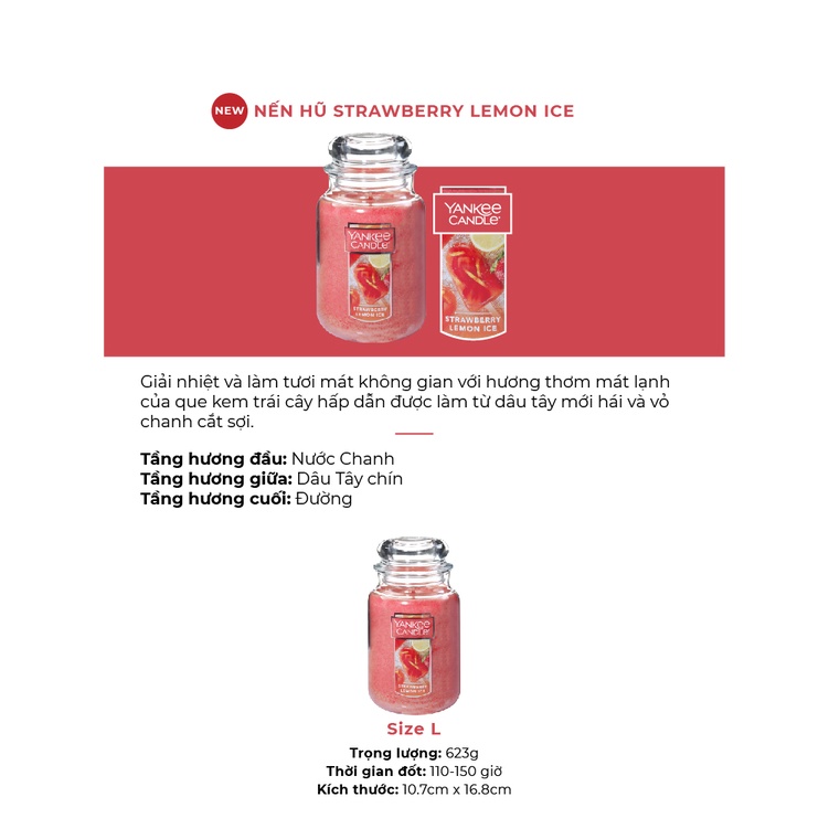 Nhà cửa & Đời sống > Trang trí nhà cửa > Nến & đồ đựng nến || [Mã LIFEMALL991 giảm 10% đơn 99K] Nến hũ Yankee Candle size L - Strawberry Lemon Ice (623g)Còn hàng