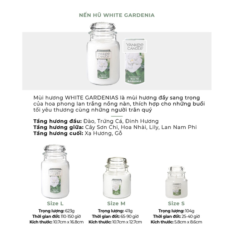 Giới thiệu Nến hũ Yankee Candle size L - White Gardenia
