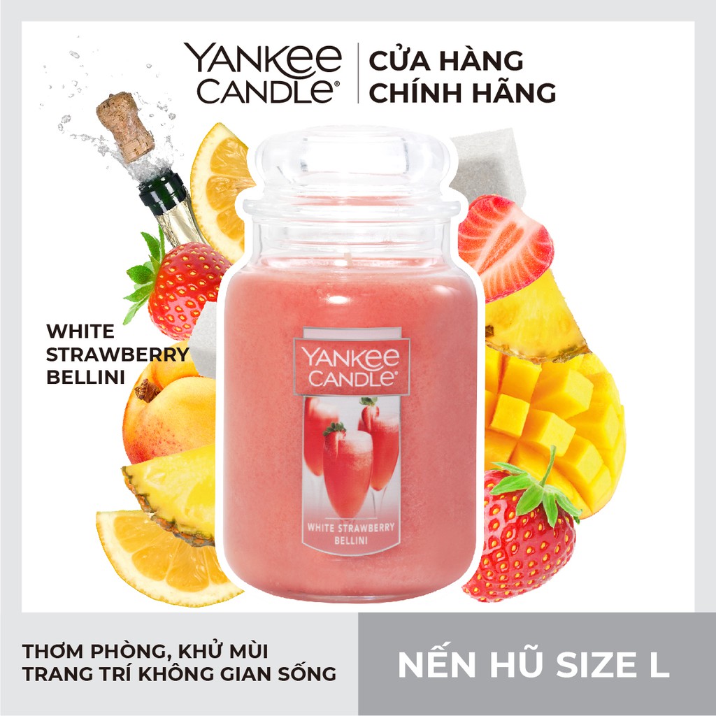 Nhà cửa & Đời sống > Trang trí nhà cửa > Nến & đồ đựng nến || [Mã LIFEMALL991 giảm 10% đơn 99K] Nến hũ Yankee Candle size L - White Strawberry BelliniCòn hàng