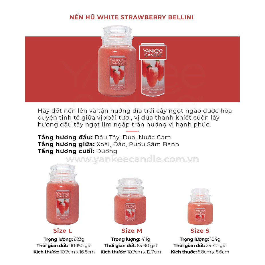 Giới thiệu Nến hũ Yankee Candle size L - White Strawberry Bellini