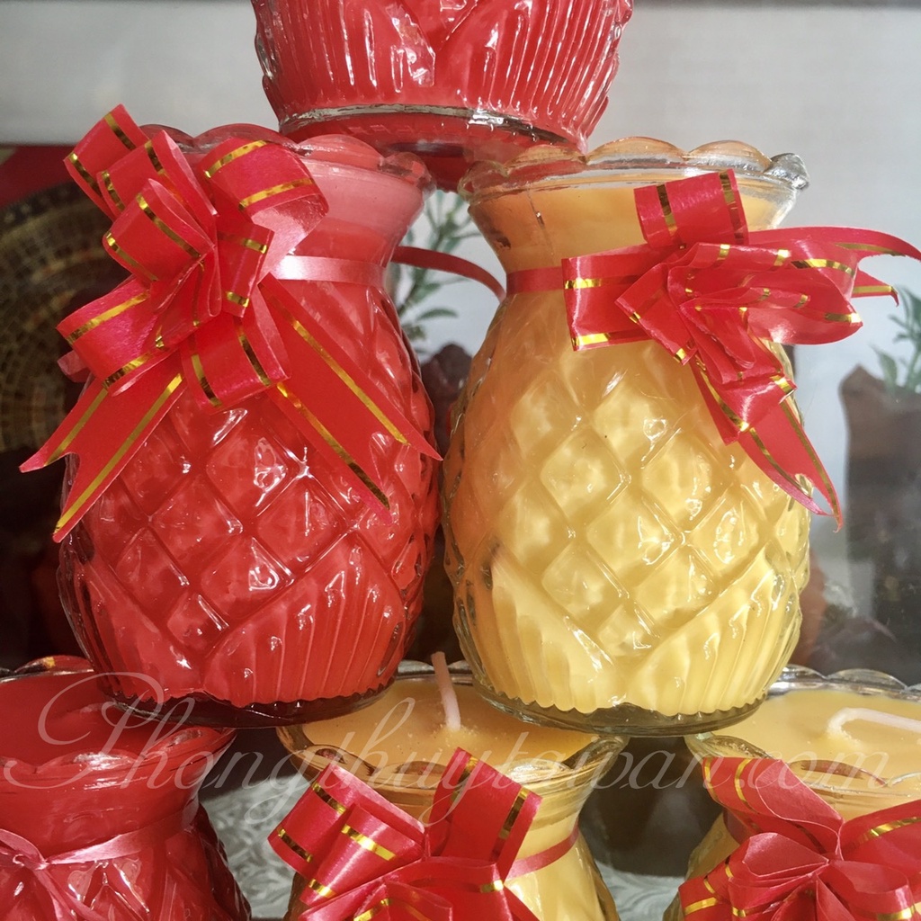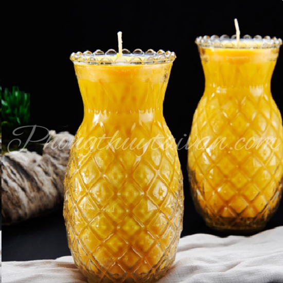 👉Nguyên liệu: sản phẩm được tinh chế từ bơ sữa tự nhiên, có đặc tính không khói, không mùi, không độc, không ô nhiễm, cháy ổn định, cháy lâu và cháy hết.Ly thủy tinh hình trái dứa sang trọng