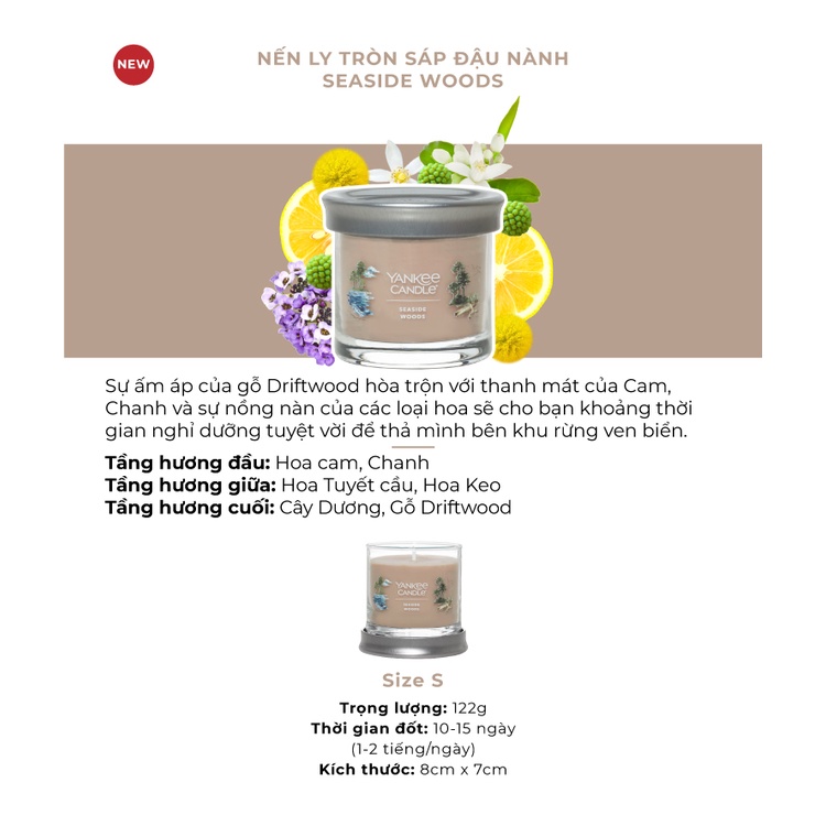 Giới thiệu Nến ly tròn sáp đậu nành Yankee Candle size S (122g) - Seaside Woods