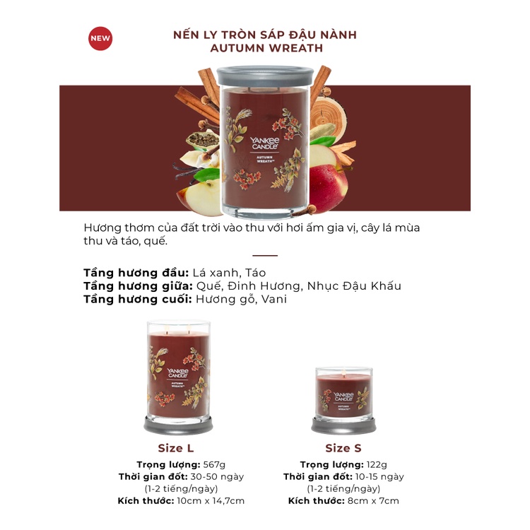 Nến ly tròn sáp đậu nành Yankee Candle size L (567g) - Autumn Wreath