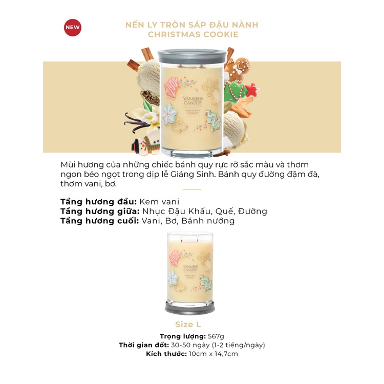 Giới thiệu Nến ly tròn sáp đậu nành Yankee Candle size L (567g) - Christmas Cookie