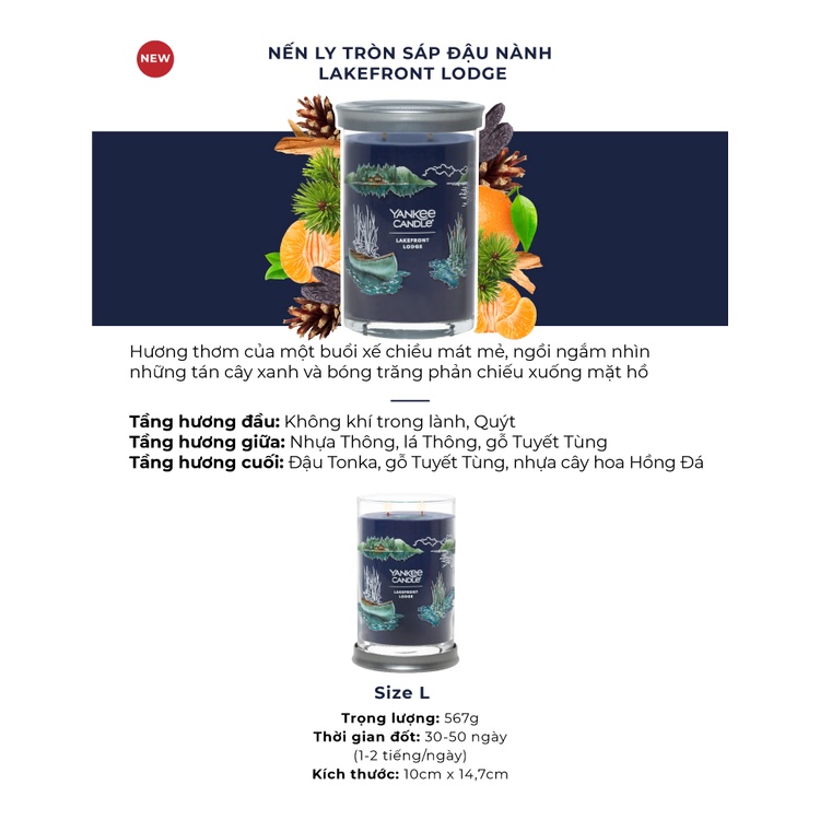 Giới thiệu Nến ly tròn sáp đậu nành Yankee Candle size L (567g) - Lakefront Lodge