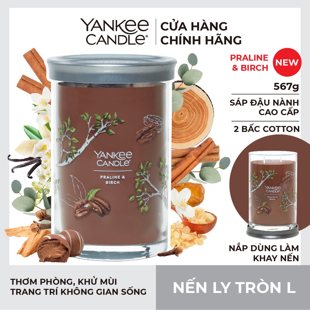Nhà cửa & Đời sống > Trang trí nhà cửa > Nến & đồ đựng nến || [Mã LIFEMALL991 giảm 10% đơn 99K] Nến ly tròn sáp đậu nành Yankee Candle size L (567g) - Praline & BirchCòn hàng