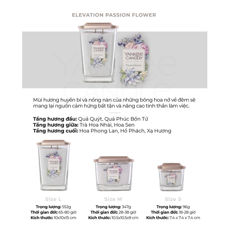 Nhà cửa & Đời sống > Trang trí nhà cửa > Nến & đồ đựng nến || [Mã LIFEMALL991 giảm 10% đơn 99K] Nến ly vuông Elevation Yankee Candle size M - Passion Flower (347g)Còn hàng