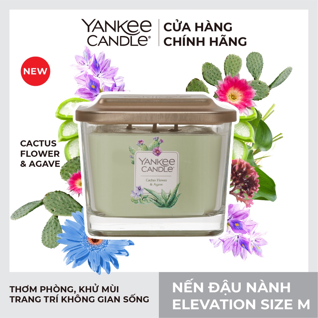 Nhà cửa & Đời sống > Trang trí nhà cửa > Nến & đồ đựng nến || [Mã LIFEMALL991 giảm 10% đơn 99K] Nến ly vuông Elevation Yankee Candle size M - Cactus Flower & Agave (347g)Còn hàng