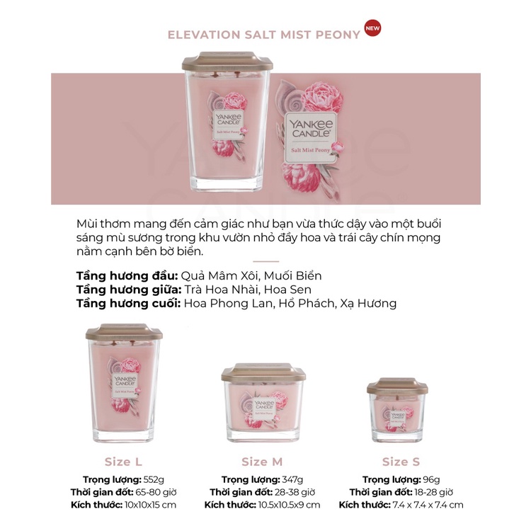 Giới thiệu Nến ly vuông Elevation Yankee Candle size M - Salt Mist Peony (347g)