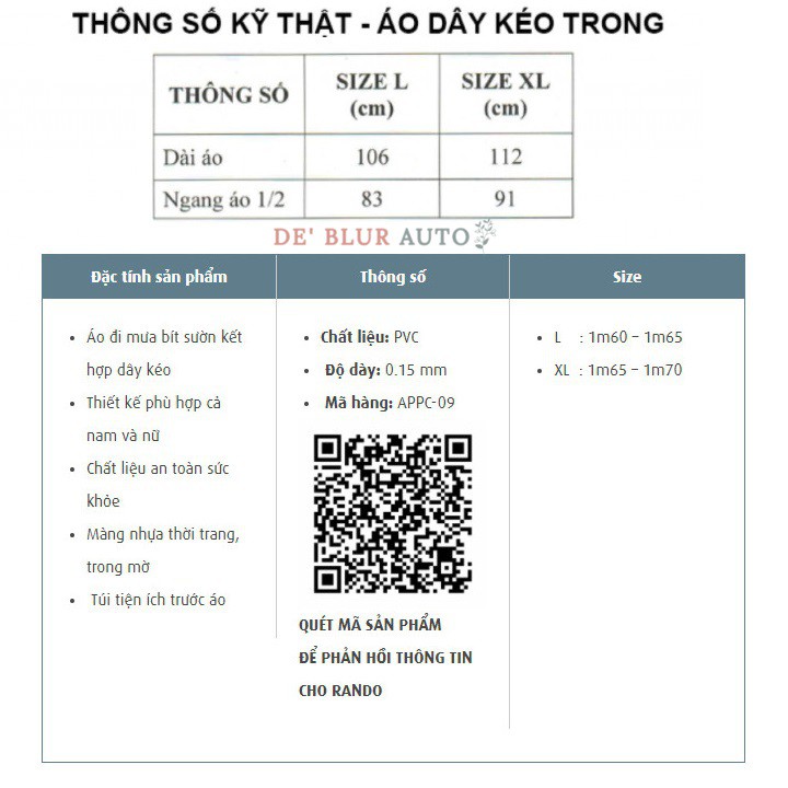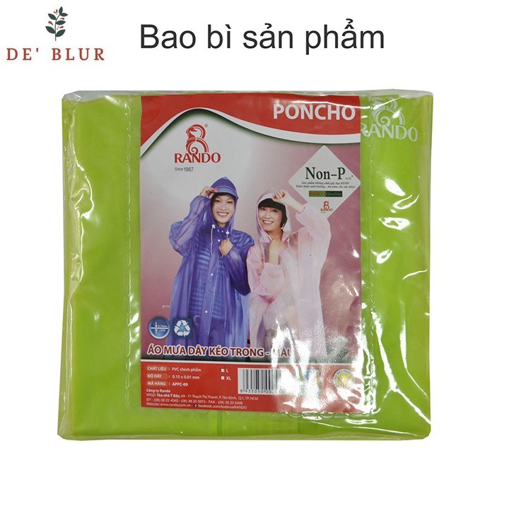 👉Áo mưa RANDO thành lập năm 1987, chuyên sản xuất các loại quần áo đi mưa cao cấp: áo mưa người lớn, áo mưa trẻ em, áo mưa poncho, áo mưa bộ, … và các loại áo mưa in quảng cáo. Nguyên liệu sản xuất từ chất liệu PVC, Nylon/PVC là sản phẩm nhựa, vải tráng nhựa chính phẩm, không độc hại an toàn cho sức khỏe người mặc.