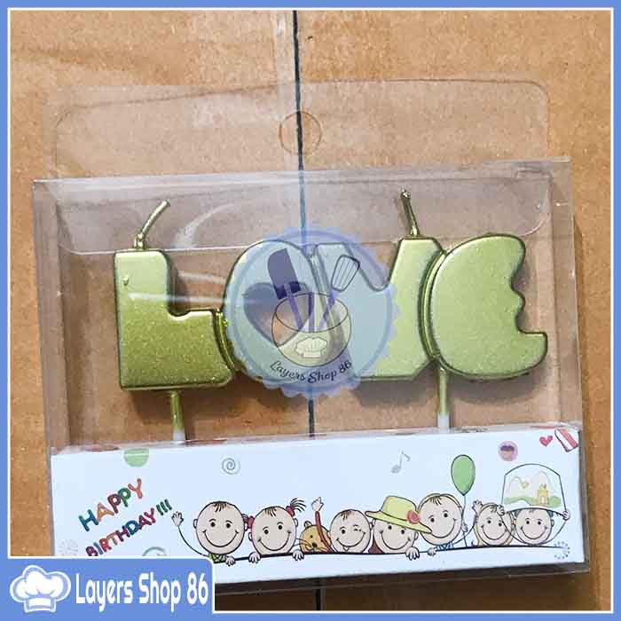 Nến nhũ vàng chữ LOVE trang trí bánh
