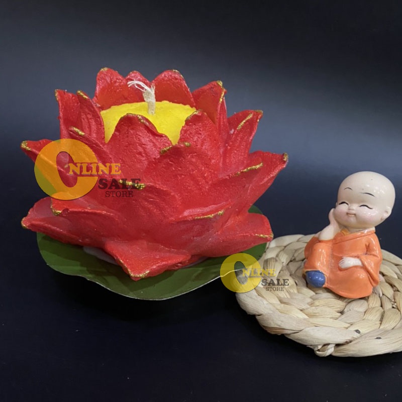 Nến sáp đèn cầy hoa sen đỏ trang trí nặng 350g thời gian cháy lên đến 48h thích hợp đặt ở nơi thờ tự
