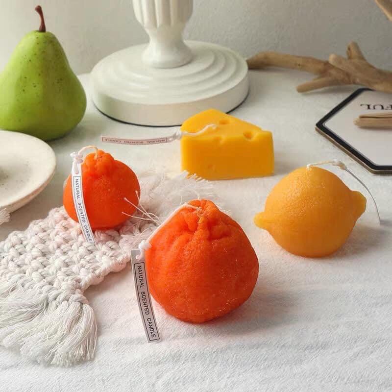 -Chất liệu: Nến thơm handmade hình quả cam vàng, phô mai nguyên liệu sáp nhập khẩu
