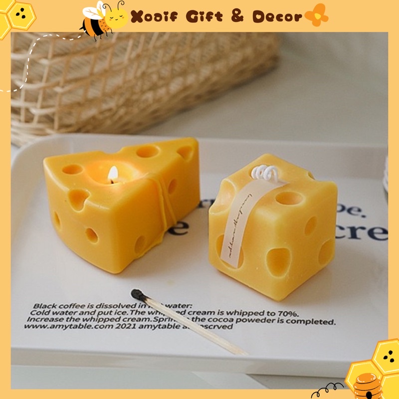 Nến sáp thơm hình miếng phomai tam giác, nến đậu nành decor phòng ngủ, bàn làm việc - Xoaif.giftdecor