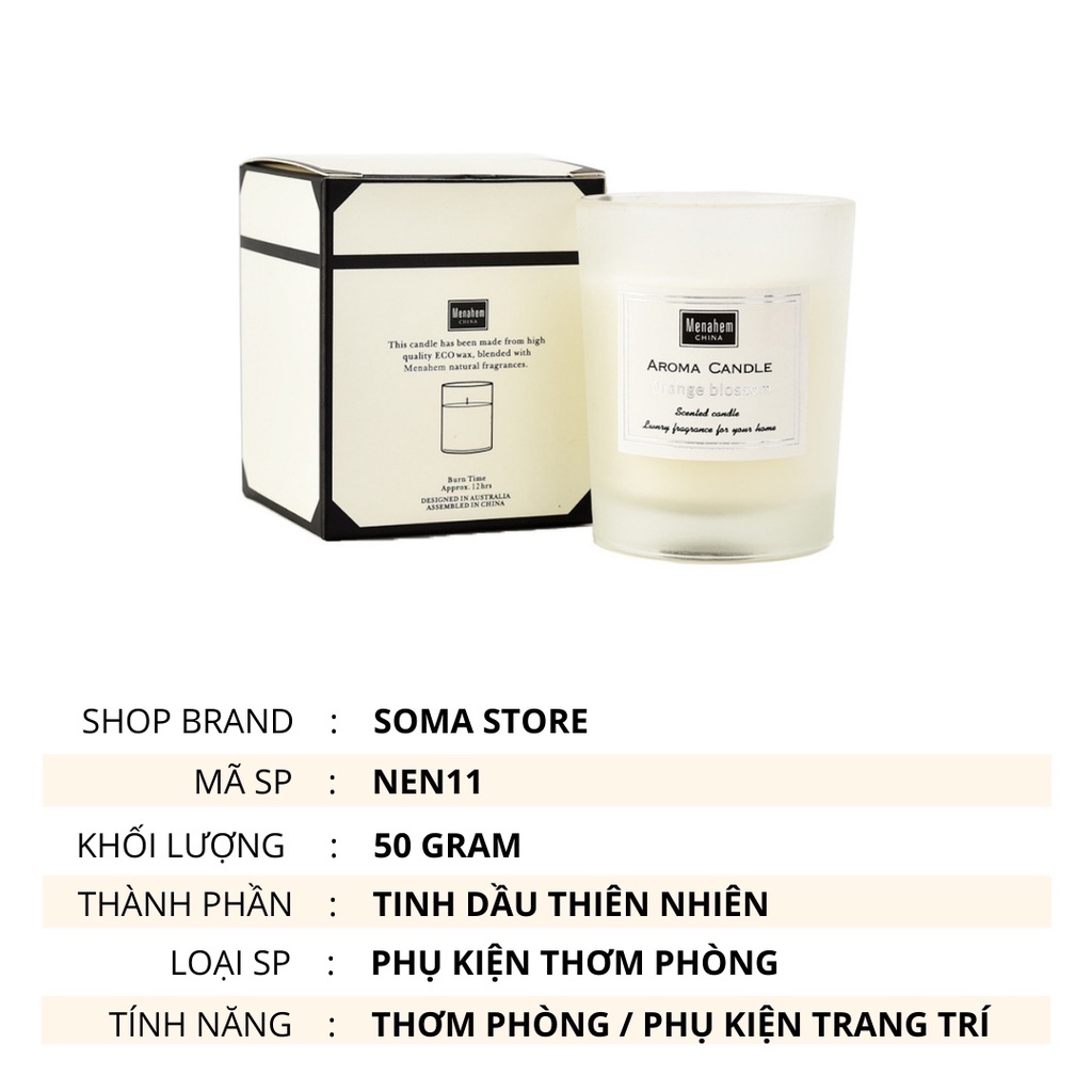 Nến Sáp Thơm Phòng Ngủ Candle Cup Tinh Dầu Thiên Nhiên Khử Mùi Không Khói 50g Menahem NEN11
