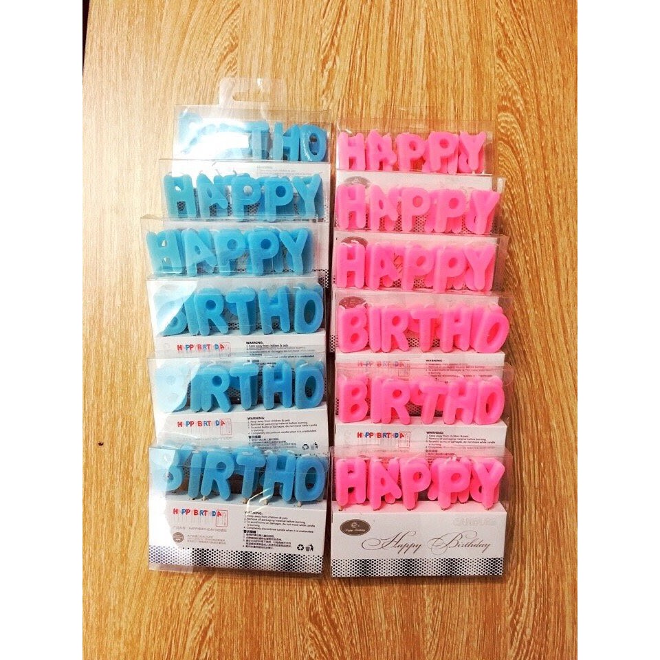 Nến sinh nhật chữ Happy birthday cực đẹpGồm màu xanh và hồng cực đẹp, hàng nến chắc chắn duy trì ngọn lửa tốt