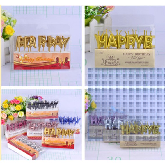 Nhà cửa & Đời sống > Trang trí nhà cửa > Nến & đồ đựng nến || Nến Sinh Nhật chữ Happy Birthday mạ vàng , màu bac, màu vàng ,màu hồng, nhiều màu , trang trí bánh kem .Còn hàng