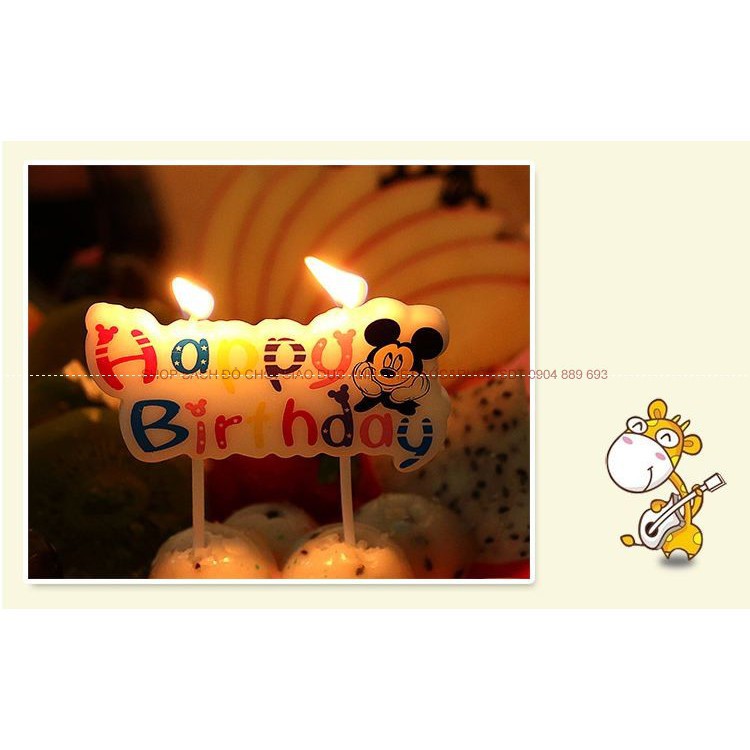 Nến sinh nhật chữ happy birthday viết liền chuột mickeyNến sinh nhật chữ happy birthday viết liền chuột mickey