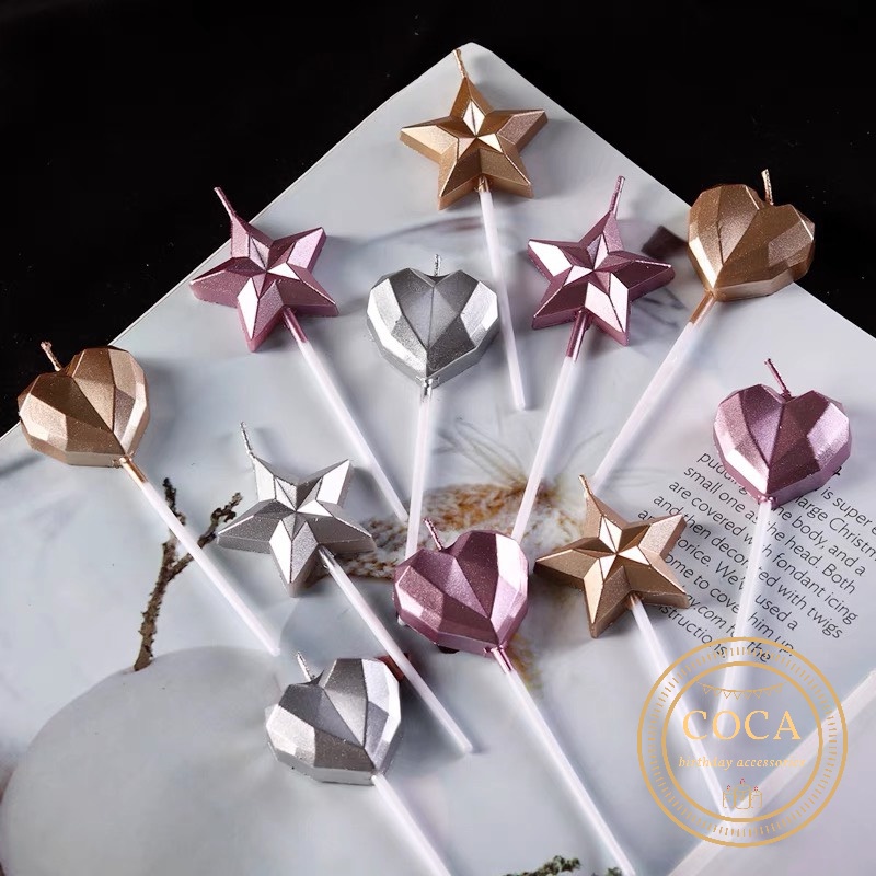 Giới thiệu Nến sinh nhật hình sao, tim đủ màu nhũ sang trọng dùng cho sinh nhật, kỷ niệm