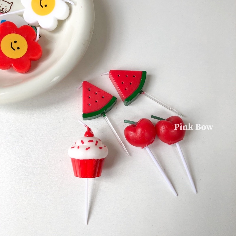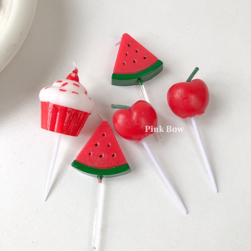 - Nến sinh nhật hình trái cây Cherry/Dưa hấu/Cupcake màu đỏ- Số lượng 1 cái