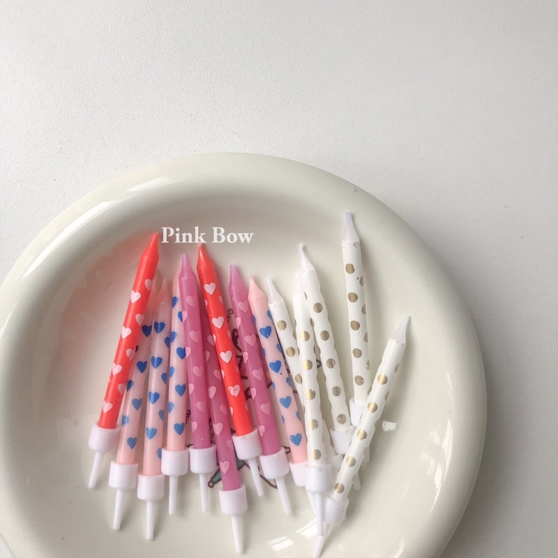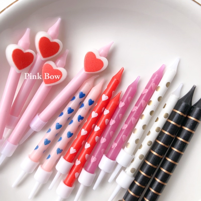 Nhà cửa & Đời sống > Trang trí nhà cửa > Nến & đồ đựng nến || Nến sinh nhật Hồng Trái tim Đỏ/Sọc Đen/ TrắngChấm biCòn hàng