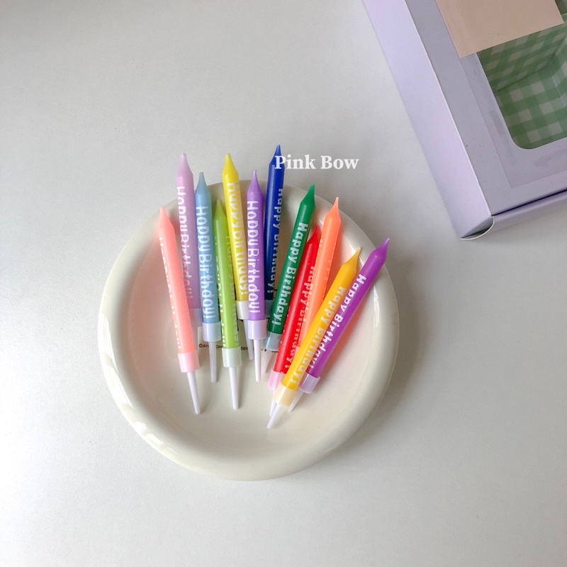 Giới thiệu Nến sinh nhật màu pastel/đậm in chữ HPBD set 6c