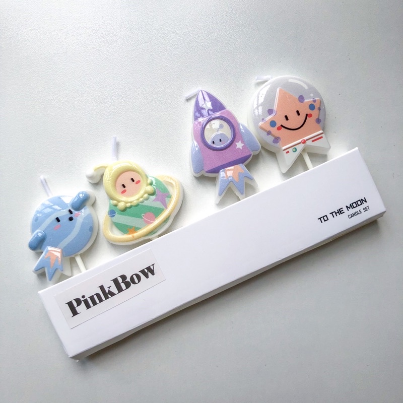 - Nến sinh nhật Phi Hành Gia TO THE MOON set 4c cute xỉu.- Chất liệu: Sáp bóng cao cấp